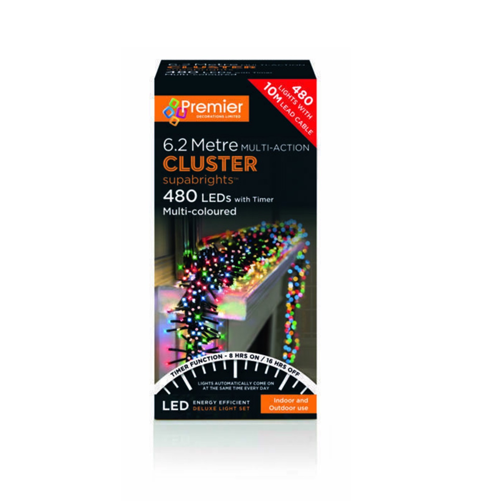 480 LED Multi-Coloured Cluster Christmas Lights with Timer, 6.2 metres