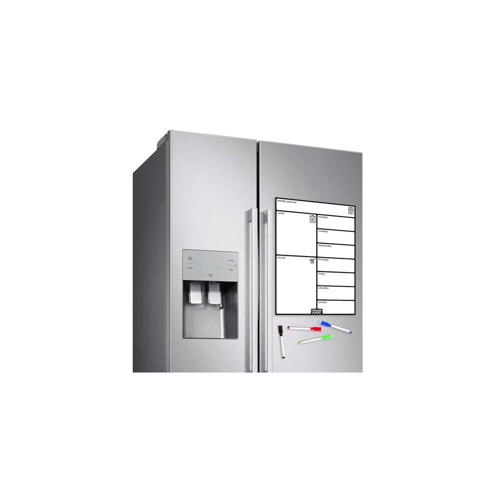 Magnetic Fridge Whiteboard Weekly Planner, Meal Planner, and Calendar All in One - 4 Coloured Wipe Clean pens Included - 42 x 30cm