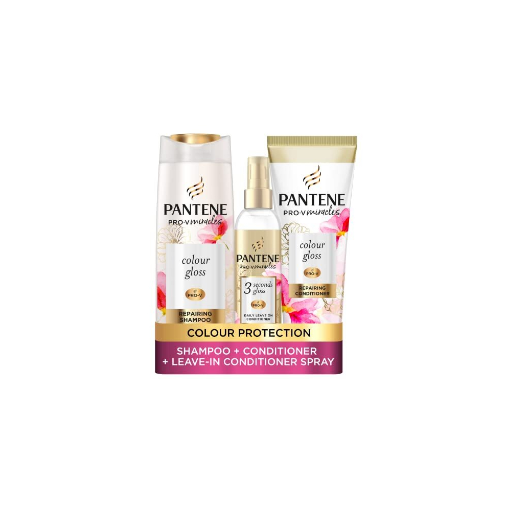 Pantene Colour Shampoo And Conditioner Set + Leave-In Conditioner Spray With Biotin and Niacinamide, Transform Damaged Coloured Hair From Dull To Glossy In 1 Use, 400/275 / 145ml