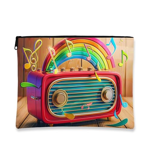 Colorful Makeup Bag Retro Radio Design Travel Bag for Women Portable Zipper Organizer Funny Gift for Music Lovers, multi-coloured, 7x9 Inch, Retro Radio