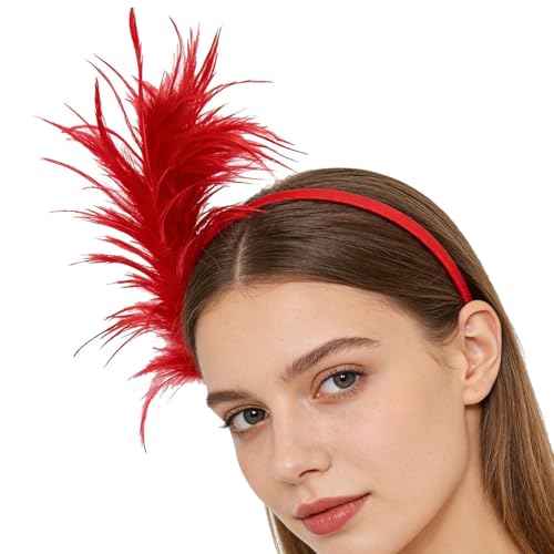 Foweknow 1920s Feather Headband Colourful Feather Hair Accessories Women's Headband Flowers Carnival Cocktail Wedding Tea Party Accessories Fascinator Headpiece Cosplay Hair Band
