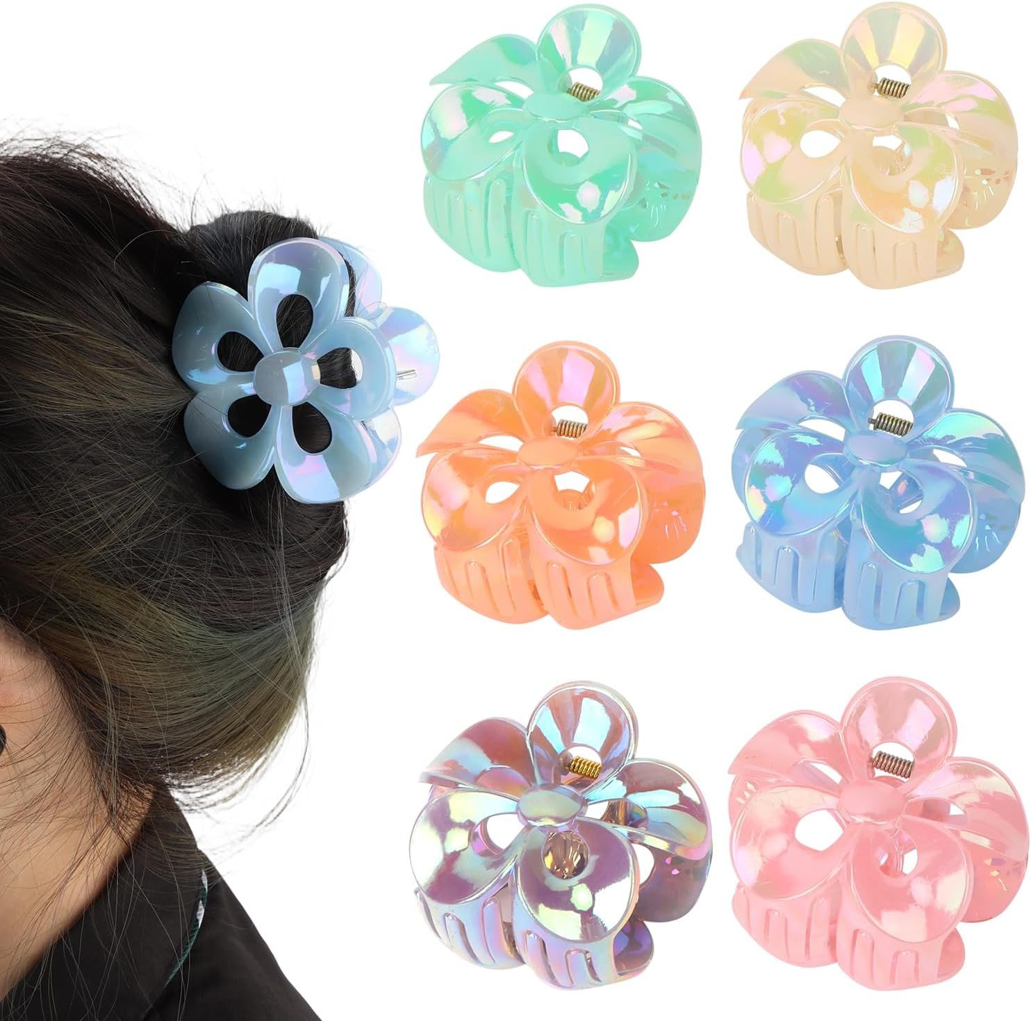 6 Pcs Flower Claw Clips, Colourful Nonslip Hair Clips for Women and Girls, Stron