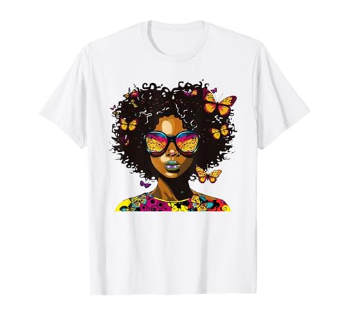 Colourful Butterfly Hair Afro Melanin Queen T-Shirt