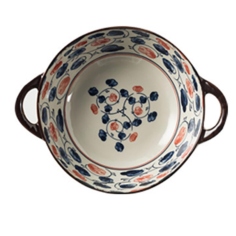 7.5 Inch Colourful Ceramic Soup Bowls with Double Handles for Pasta, Salad, Cereal, Microwave and Dishwasher Safe, Flower Vines