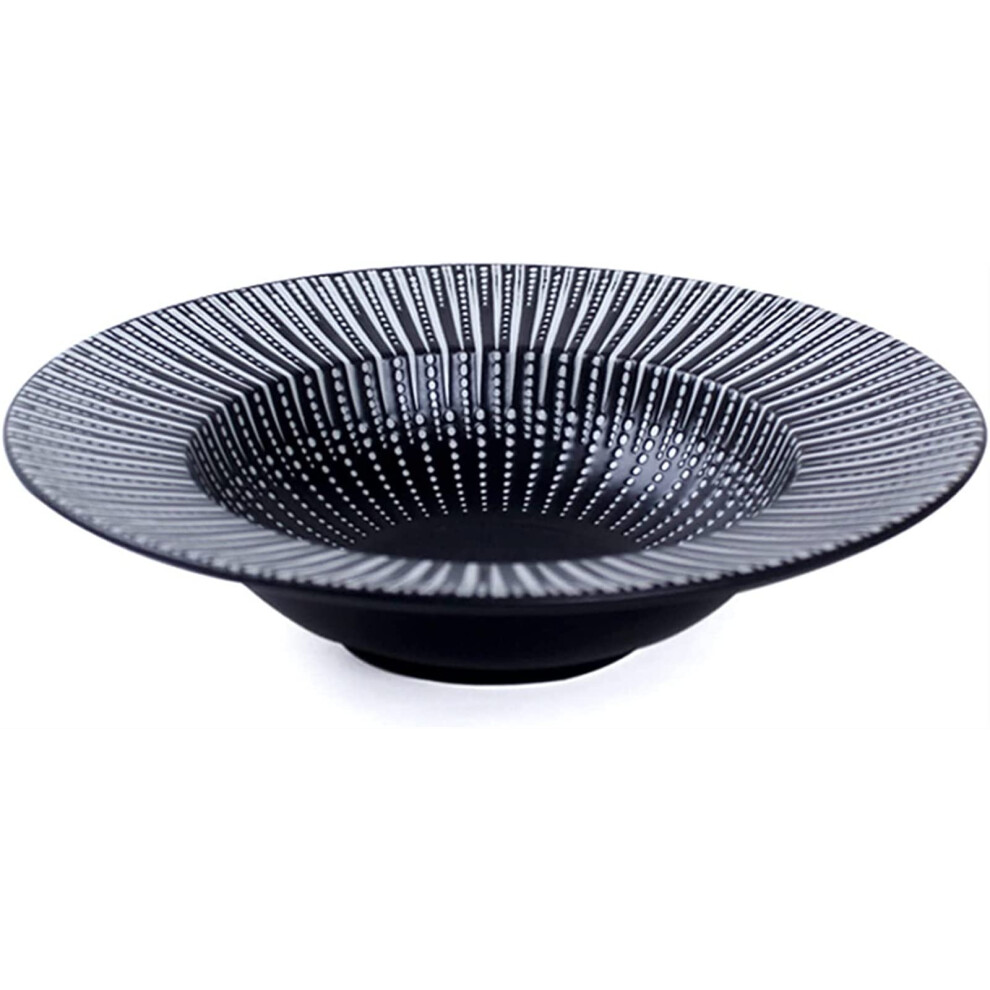 Soup Bowls with Wide Rim, 25.5 cm Porcelain Serving Bowls, Colourful Salad Dessert Pasta Bowls, Black and White Stripes, Microwave Dishwasher Safe