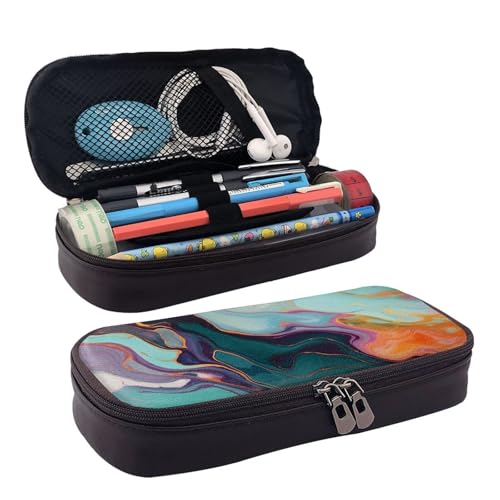 KLLTYHMU Leather Pencil Case Organizer Big Capacity Pencil Pouch Storage Bag With Compartments Cute Pencil Bag Colourful Marble Pen Box Portable Cosmetic Makeup Bag Organizer