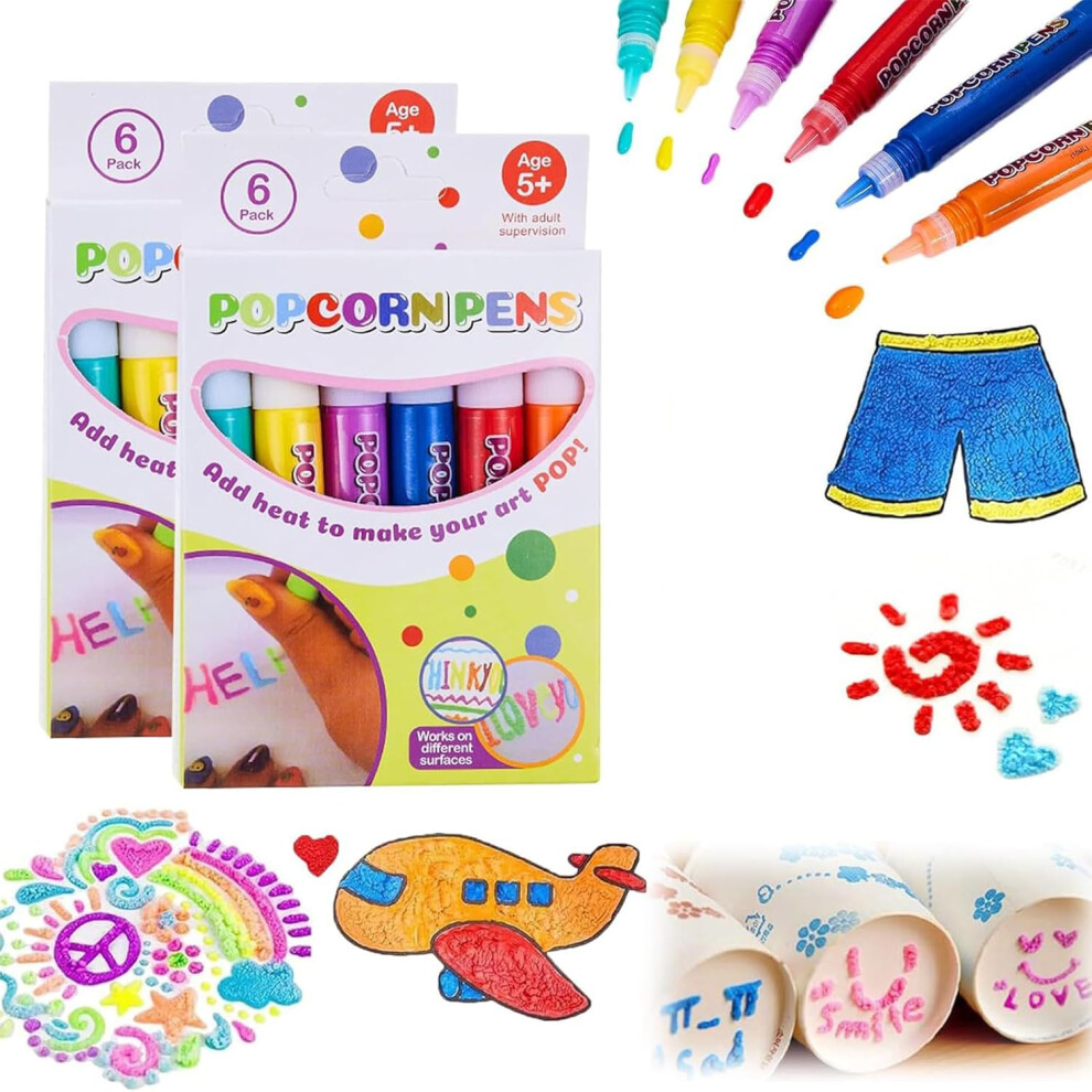 12Pcs Magic Puffy Pens, DIY Bubble Popcorn Drawing Pens 3D Art Safe Pen, Colourful Pens Greeting Birthday, Magic Colourful Popcorn Pen