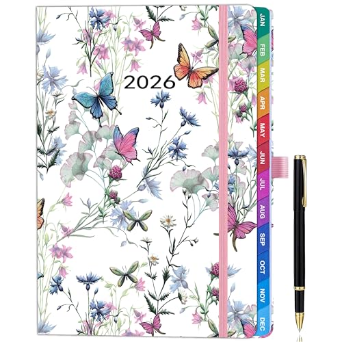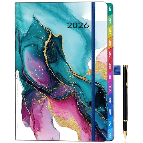 2026 A5 Week-to-View Diary & Weekly Planner (Jan–Dec) – Colourful Monthly Tabs, Pen Holder, Pen Loop, Inner Pocket & Elastic Closure – Great for Office, School & Personal Planning