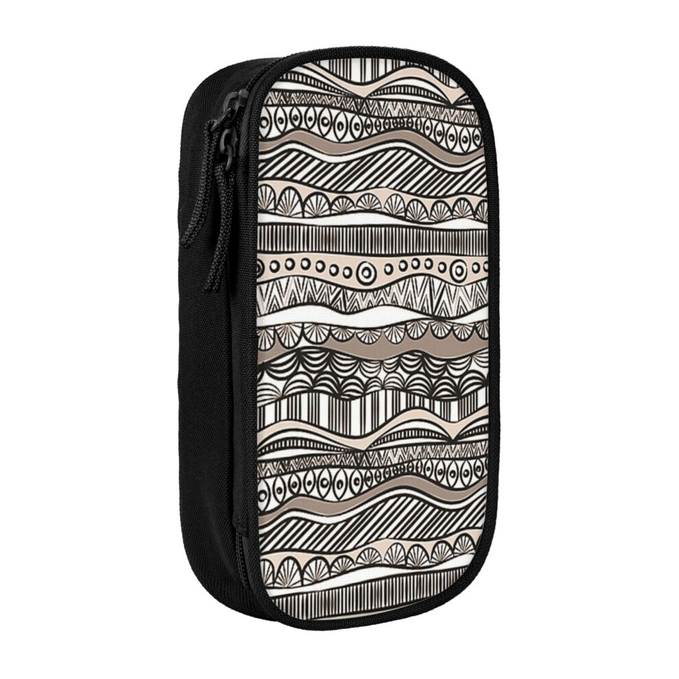 Pencil Case Black And White Geomatric Line Pattern Colourful Pen Holder Box Pouch Bag with Double Zippers for School Office Work