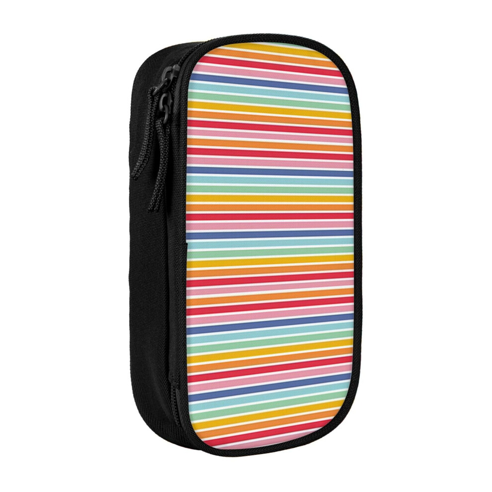 Pencil Case Colourful Stripes Pen Holder Box Pouch Bag with Double Zippers for School Office Work