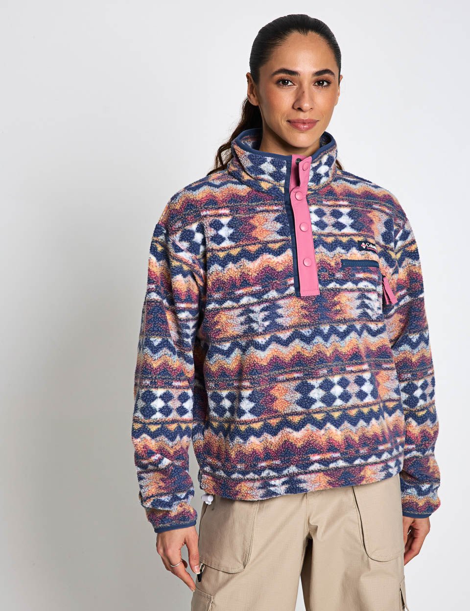 Columbia Women's Helvetia II Cropped Sherpa Half Snap Printed Fleece - Lavender Pearl/Sunscape - Purple - Size: Small