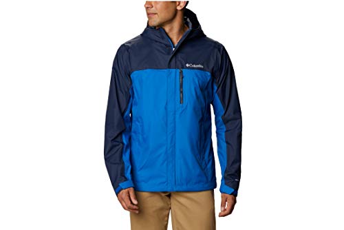 Columbia Men's Pouring Adventure Jacket, Waterproof Rain Jacket, Bright Indigo/Collegiate Navy, Size L