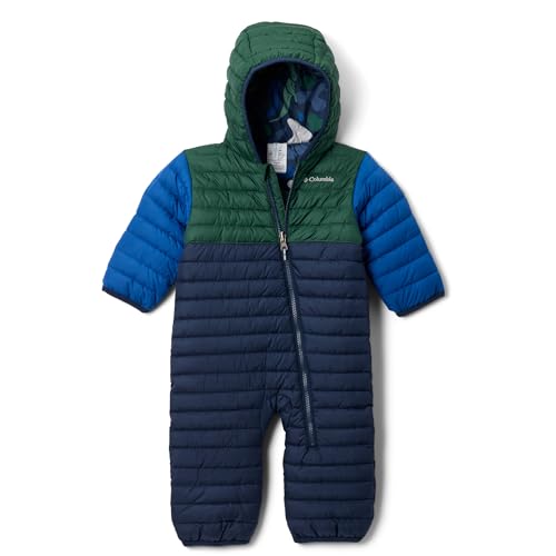 Columbia Youth Infant Powder Lite 2 Reversible Bunting, Snowsuit Romper, Collegiate Navy/Rain Forest/Mountain Blue, 6/12 Months