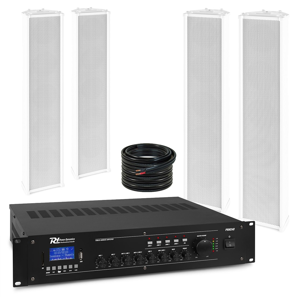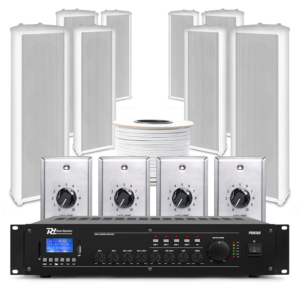 Power Dynamics OCS5 Outdoor Column Wall Speaker Set with 100V Amplifier System