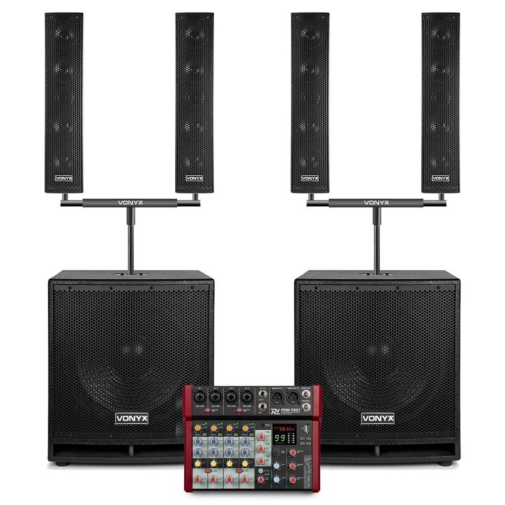 Vonyx VX880BT Column Array Speaker System with PDM-Y601 PA Mixer - Live Band PA