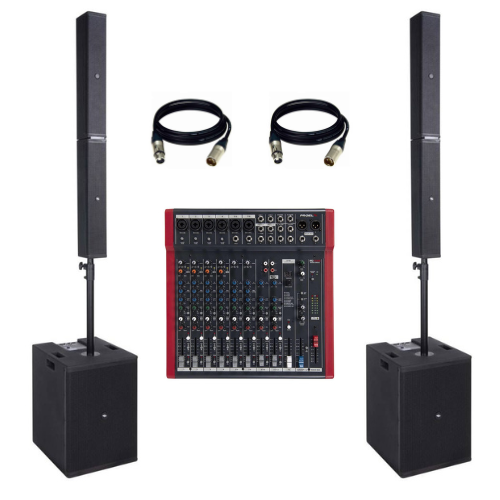 Pair of Active Column Array PA Speaker Systems with Club XS6 Mixer & Cases VX820