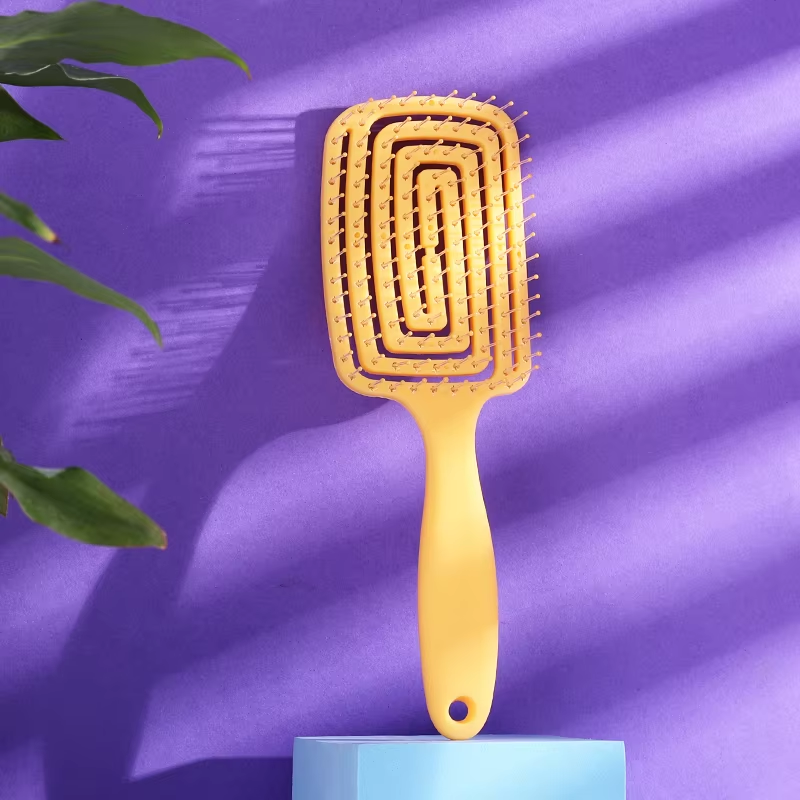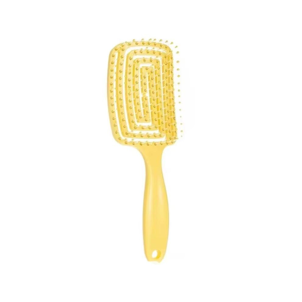 (yellow) "Elastic Detangling Hair Brush â Scalp Massage Comb, Fast Blow Dry, Hollow Design, Anti-Knot Styling & Smooth Hair Tool"