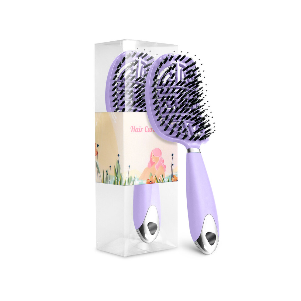 (purple) "Elastic Detangling Hair Brush â Scalp Massage Comb, Fast Blow Dry, Hollow Design, Anti-Knot Styling & Smooth Hair Tool"