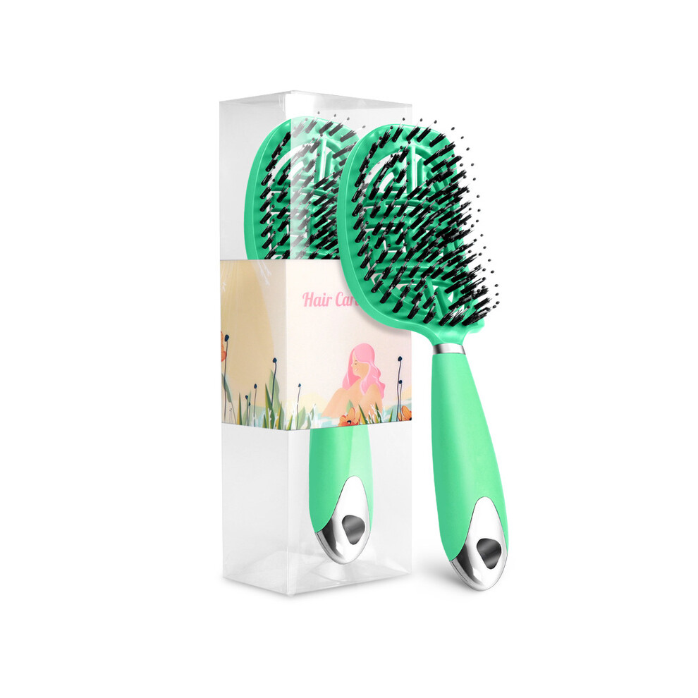 (green) "Elastic Detangling Hair Brush â Scalp Massage Comb, Fast Blow Dry, Hollow Design, Anti-Knot Styling & Smooth Hair Tool"