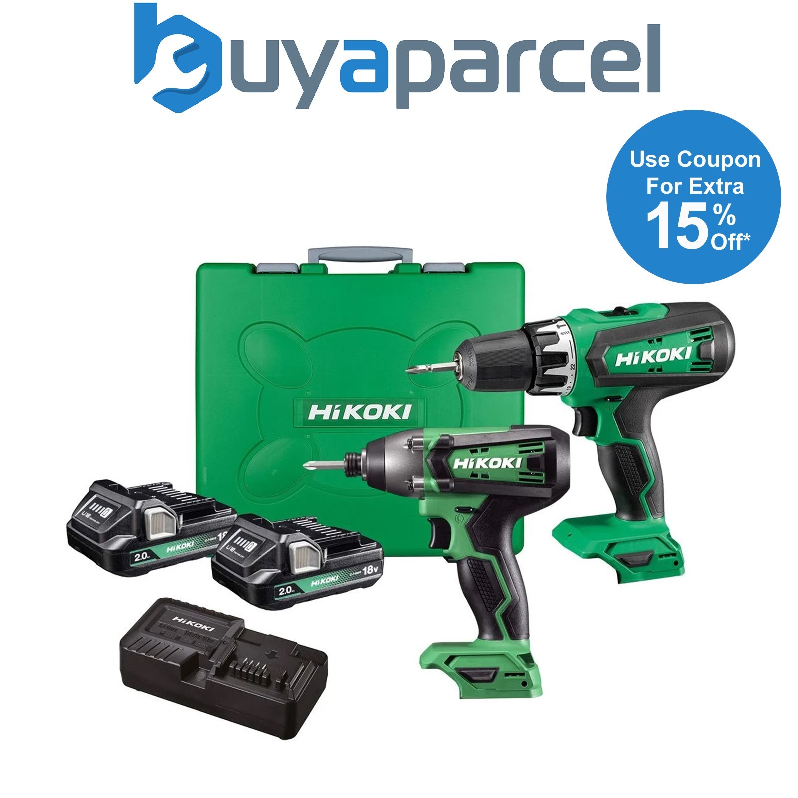 HiKOKI KC18DEJAZ Cordless brushless Combo kit (Combi Drill, Impact Driver, Charger, 2 x 18v 5.0Ah Batteries in a case)