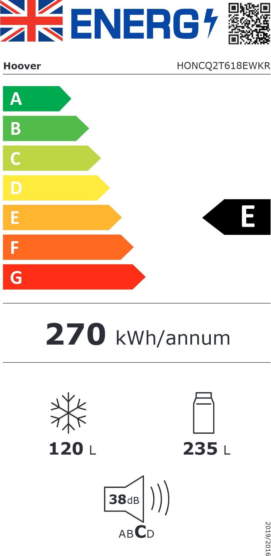 HONCQ2T618EWKR H-Combi 300 355l Total No Frost Fridge Freezer - White