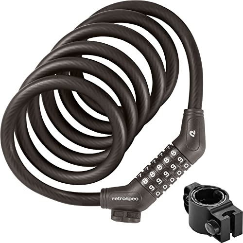 Retrospec Grizzly Plus Cable Bike Combination Lock Combo, Heavy Duty Anti Theft Bicycle Cable Lock, 6 Foot Coiled Cut Resistant Cable with 5 Digit Custom Combination and Mounting Bracket,Matte Black