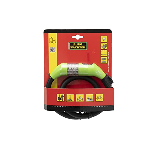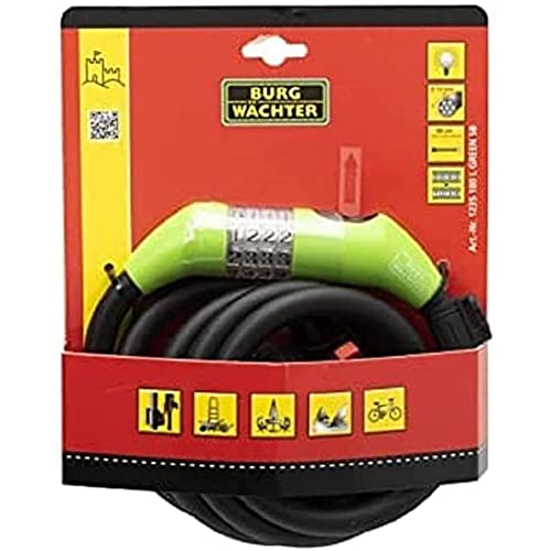 Burg-Wächter 1235 180 L 15mm Illuminated Combination Bike Cable Lock 180cm, Green