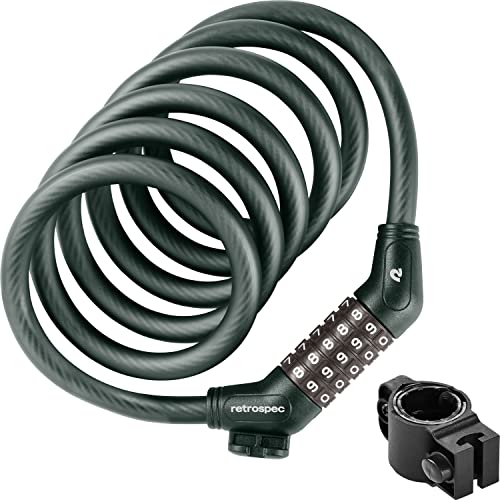 Retrospec Grizzly Plus Cable Bike Combination Lock Combo, Heavy Duty Anti Theft Bicycle Cable Lock, 6 Foot Coiled Cut Resistant Cable with 5 Digit Custom Combination and Mounting Bracket