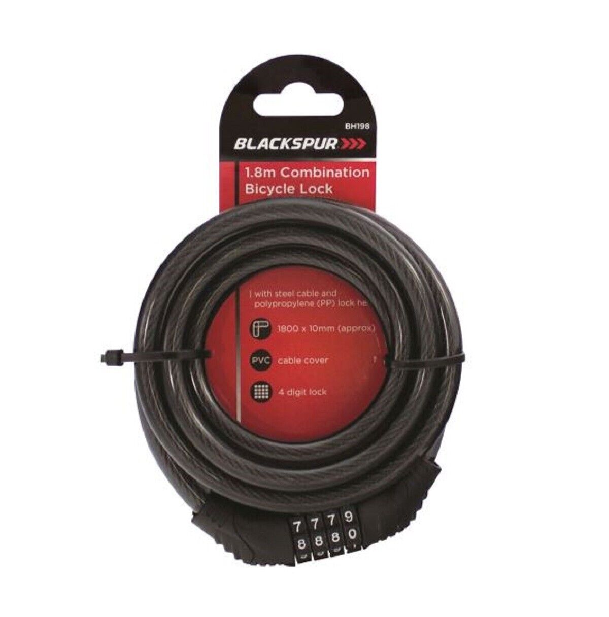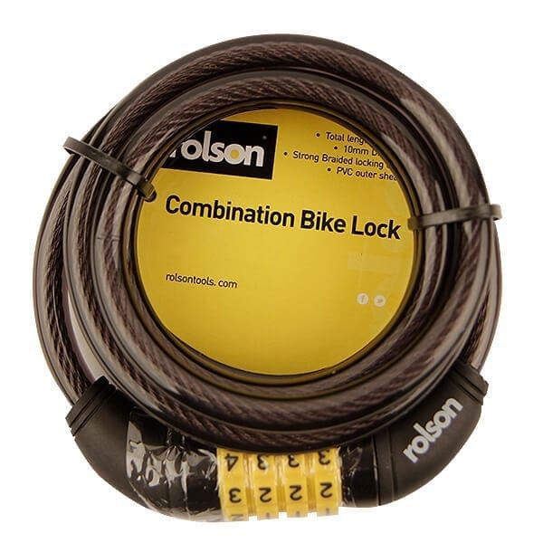 Rolson Combination Bike Lock 10mm x 1800mm Cable 4 Digit Code Cut Resistant