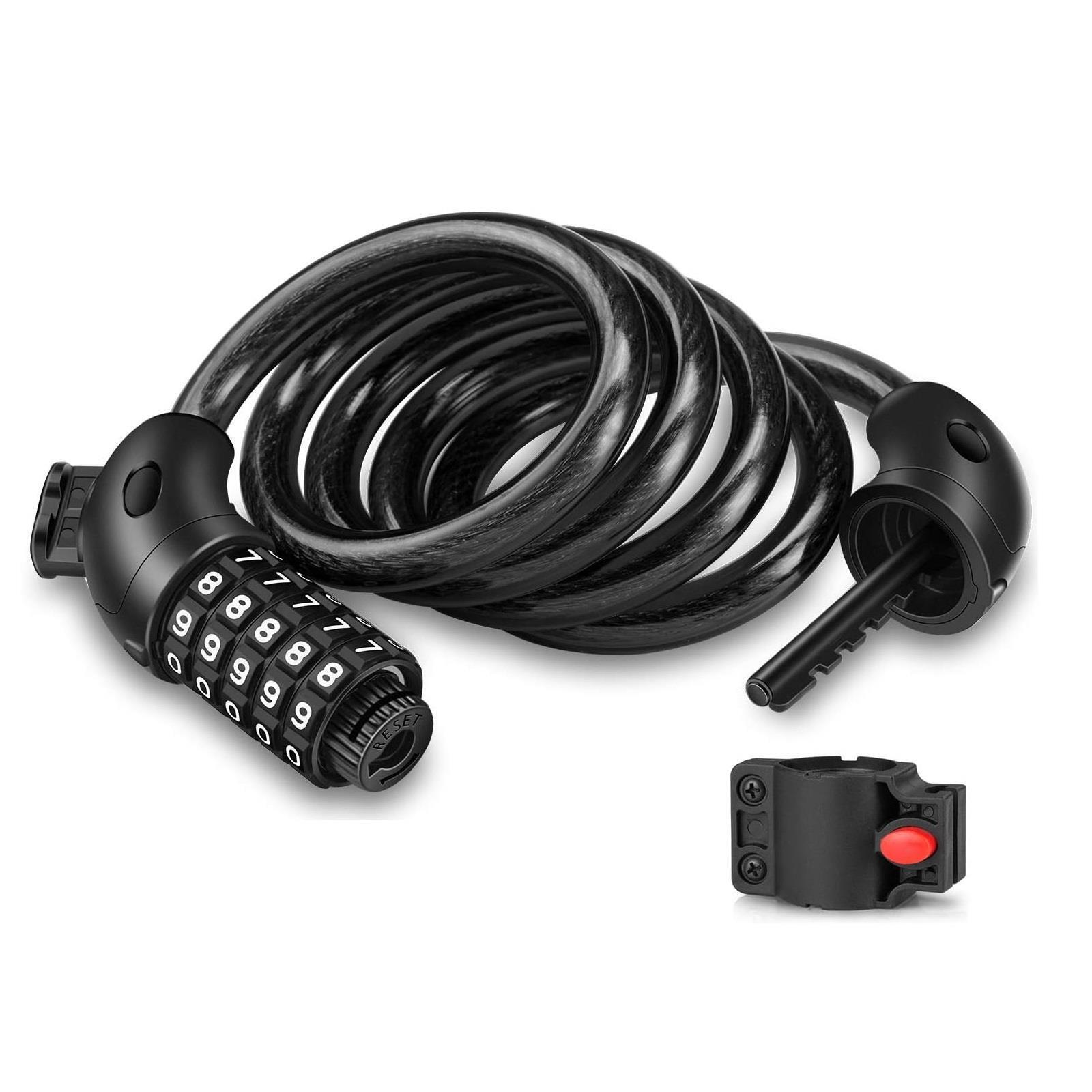 KEYSTP Bike Lock Cable with Combination & Key, Password Lost Retrievable Bicycle Lock Anti-Theft, Coiled Secure Resettable Bike Combination Lock with Mounting Bracket for Bikes and Scooters(12mm)