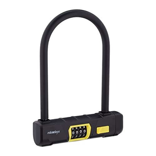 Relaxdays Code, U E-Bike, Combination Lock, Steel, Plastic, Black/Yellow, 25x18x3.5