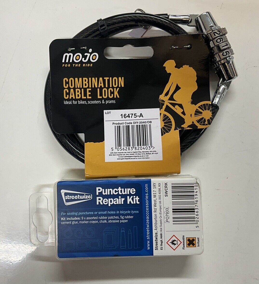 Mojo 4 Digit Combination Cable Lock Bike Bicycle/Scooter + Free puncture repair