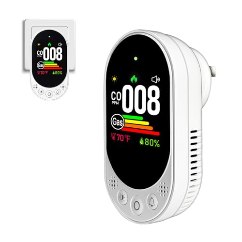 VETOUCH Plug-in CO and Gas Detector, 4-in-1 Combination Natural Gas and Carbon Monoxide Detector,Detect Co,Gas,Temperature,Humidity Values Suitable for Home,Outdoor Camping RV Occasions