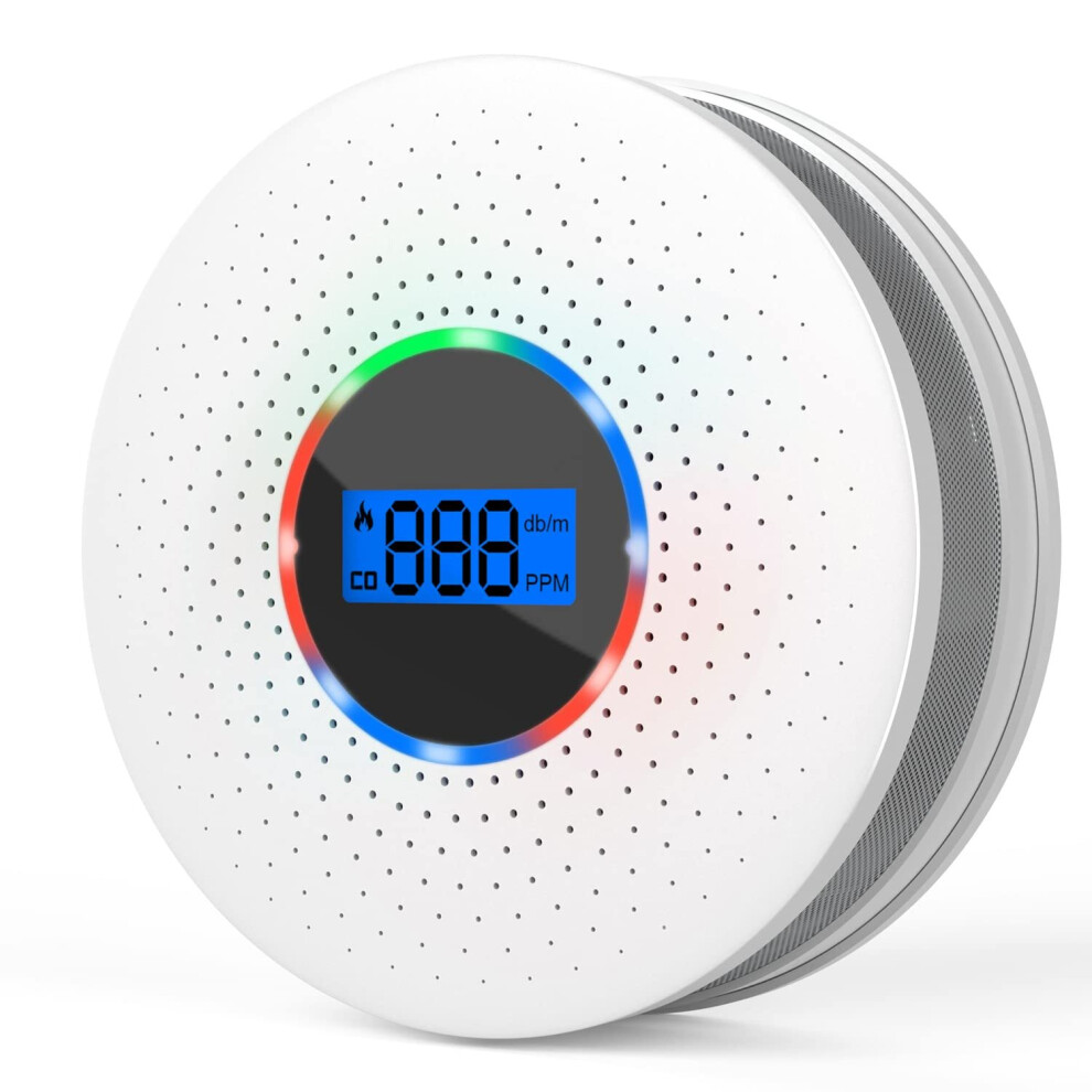 Combination Smoke & Carbon Monoxide Alarm Detector,Dual Sensor Smoke CO Detector with LCD Display and and Sound Warning for use in your Home