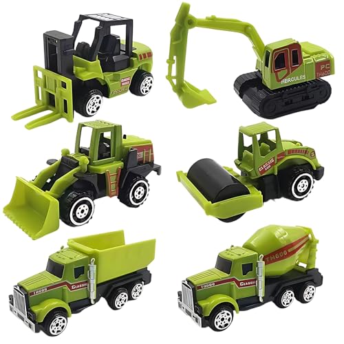 WaaRiuQ 6 Green Toy Tractors, Tractor Ted Toys and Combine Harvester Toys, Farm Set for Kids, Durable Construction Vehicles for Toddlers, Includes 6 Assorted Styles, Ideal for Imaginative Play
