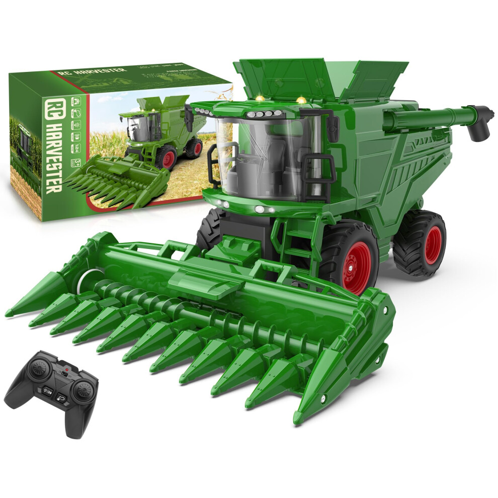Uarzt Remote Control Combine Harvester Tractor Toy with Corn Head, RC Tractor Toys for Kids 3+, Light/Spray/Sound/1/24 Scale