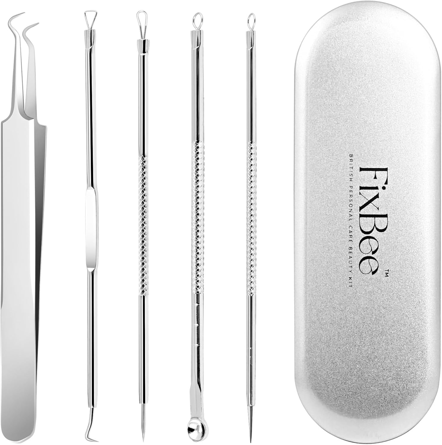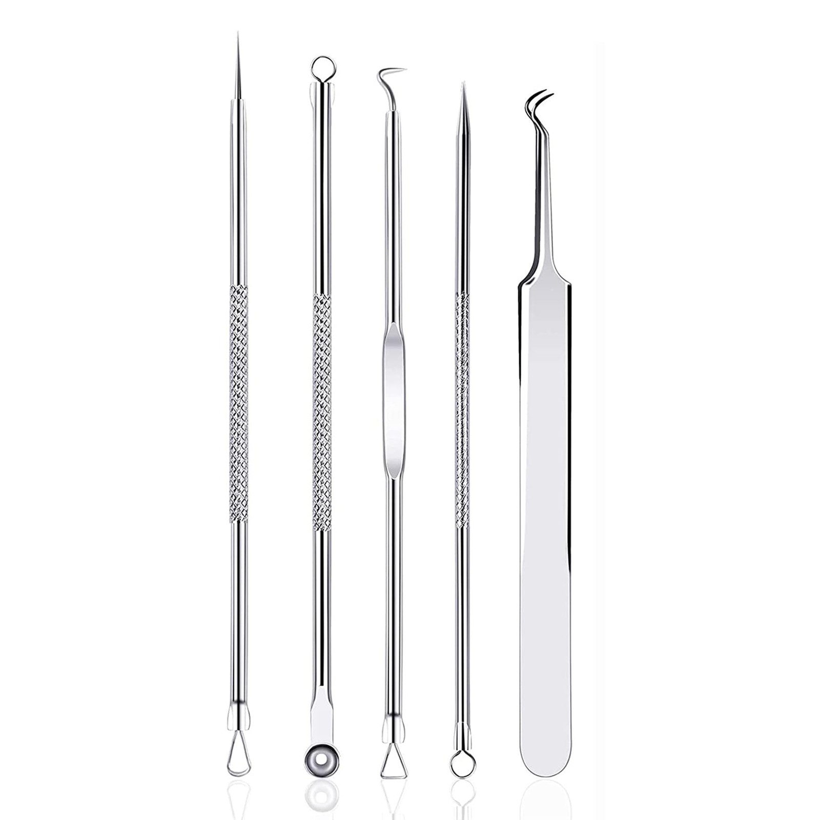 5PCS Blackhead Remover Tool Set Acne Extractor Comedone Pimples Spot and Zit Removal Tool With Case (Silver)