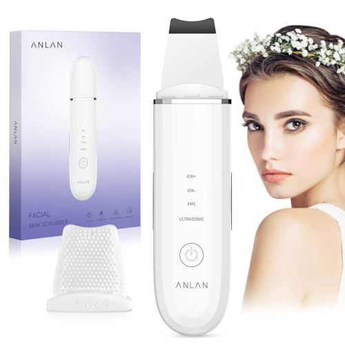 Skin Scrubber, ANLAN Ultrasonic EMS Ion Exfoliating Device Face Cleanser and Blackhead Remover Pores Cleaning Wrinkle Remover Comedone Extractor Skin Care with 4 Modes USB Rechargeable