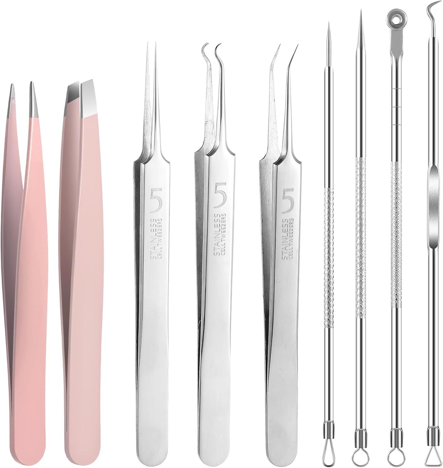9 Pcs Pimple Popper Tool Kit Professional Blackhead Remover Comedone Extractor
