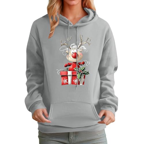 Christmas Hoodies for Women Sweatshirt, Cozy Long Sleeve Hooded Dress With Festive Reindeer Print For Casual Winter Wear And Holiday Comfort (Grey XXL)