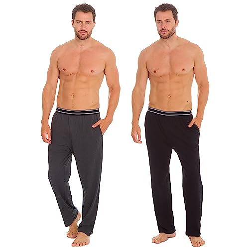 INSIGNIA 2 Pack Mens Plain Jersey Pyjama Lounge Bottoms Pants (Black -Grey comfort top, XXL)