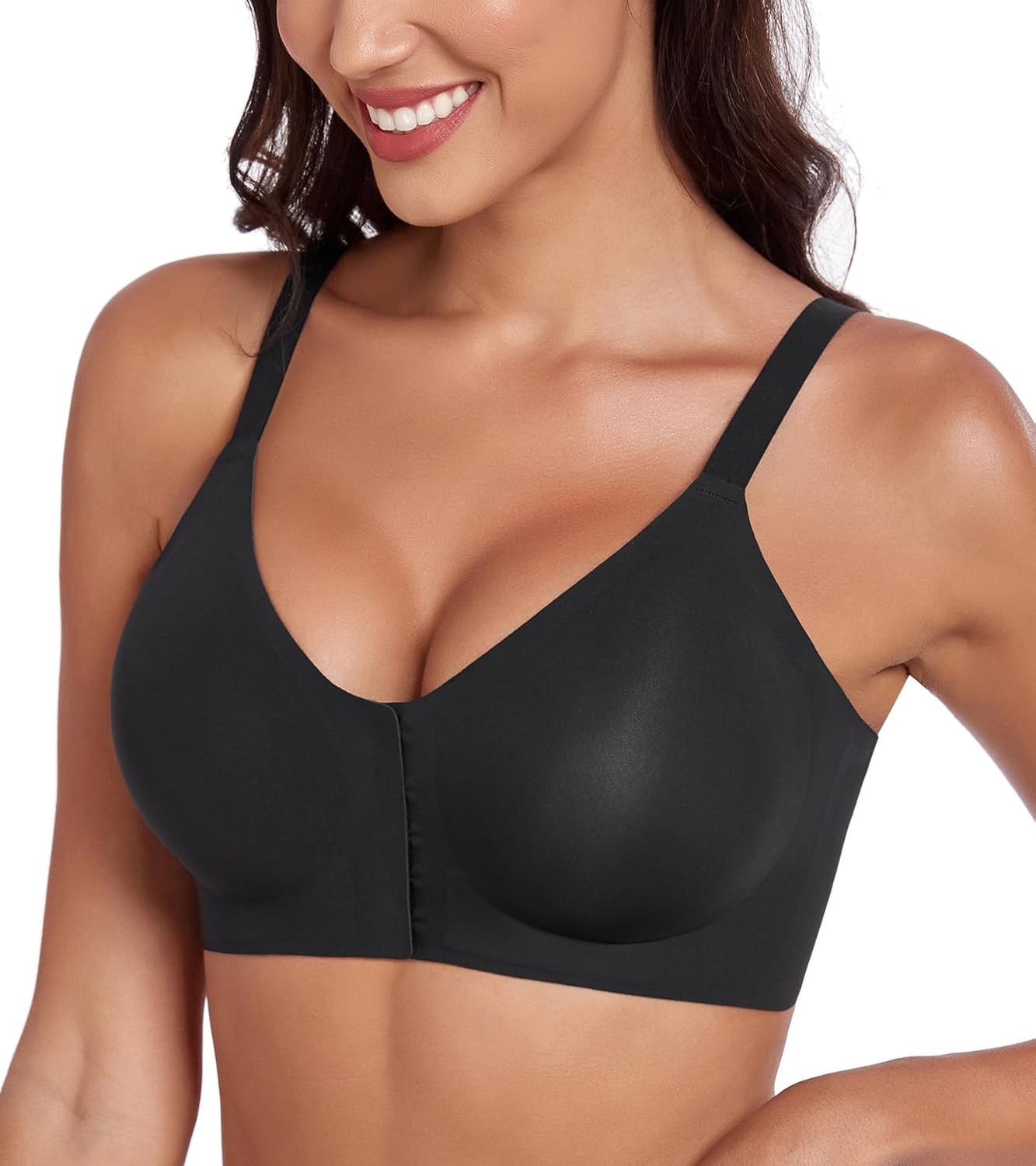 DotVol Women's Wirefree Front Closure Comfort Seamless Lightly XXL, Black