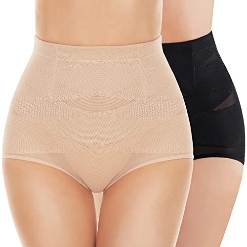 SIMIYA Women Tummy Control Knickers High Waisted Shapewear Slimming Underwear Comfort Body Shaper (XXL) Beige Black
