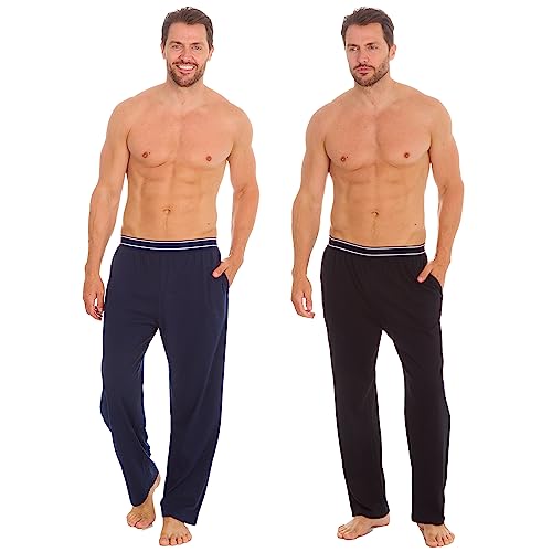 INSIGNIA 2 Pack Mens Plain Jersey Pyjama Lounge Bottoms Pants (Black -Navy comfort top, XXL)