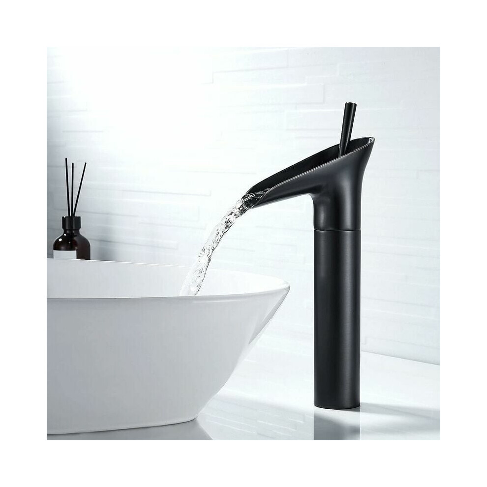 Ultra-thin Waterfall Spout Design Faucet, Black Bathroom Faucet with Large Rectangular Spout, Hot And Cold Water Outlet For Your Comfort Zone, Single