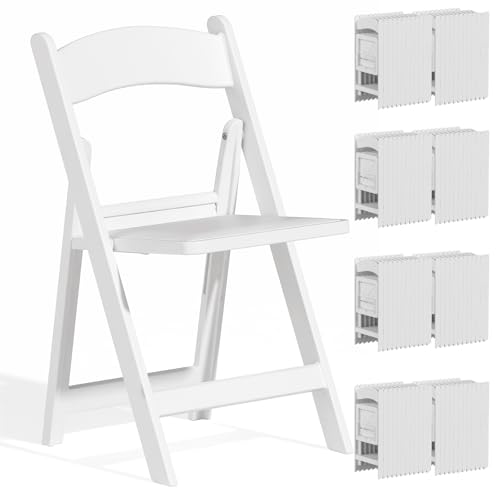 TRINEAR White Folding Chairs 48 Pack, Comfortable Resin Chairs, Folding Chair with Cushion - Indoor/Outdoor Light Weight Foldable Chair for Events, Party Wedding Picnic