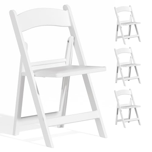 TRINEAR White Folding Chairs 4 Pack, Comfortable Resin Chairs, Folding Chair with Cushion - Indoor/Outdoor Light Weight Foldable Chair for Events, Party Wedding Picnic