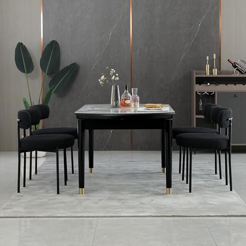 AISALL Black Dining Chairs Set of 4, Modern Upholstered Kitchen Chair with Thickened Seat (3.94 Inch) - Curved Backrest & Sturdy Metal Legs, Comfortable Boucle Chairs for Dining Room, Kitchen