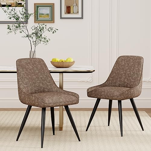 Andeworld Upholstered Dining Chairs Set of 2, Comfortable Modern Accent Chairs with Metal Legs,Faux Leather Industrial Side Leisure Chair for Living Room/Dining Room/Bistro/Coffee -Brown
