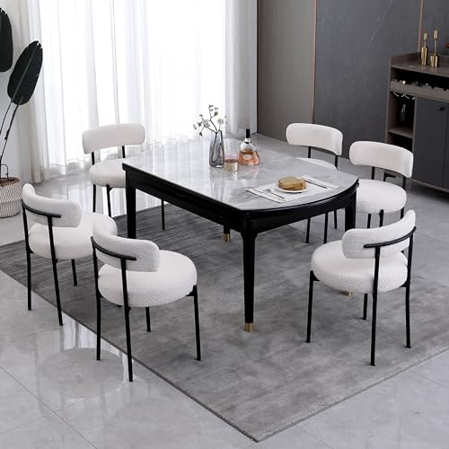 AISALL White Dining Chairs Set of 6, Modern Upholstered Kitchen Chair with Thickened Seat (3.94 Inch) - Curved Backrest & Sturdy Metal Legs, Comfortable Boucle Chairs for Dining Room, Kitchen